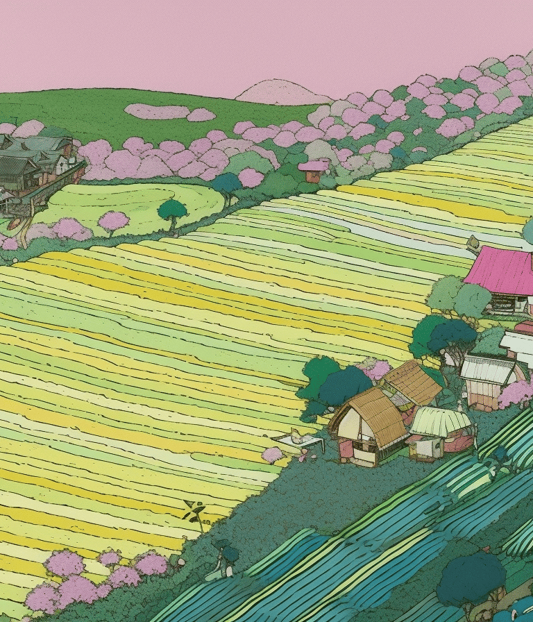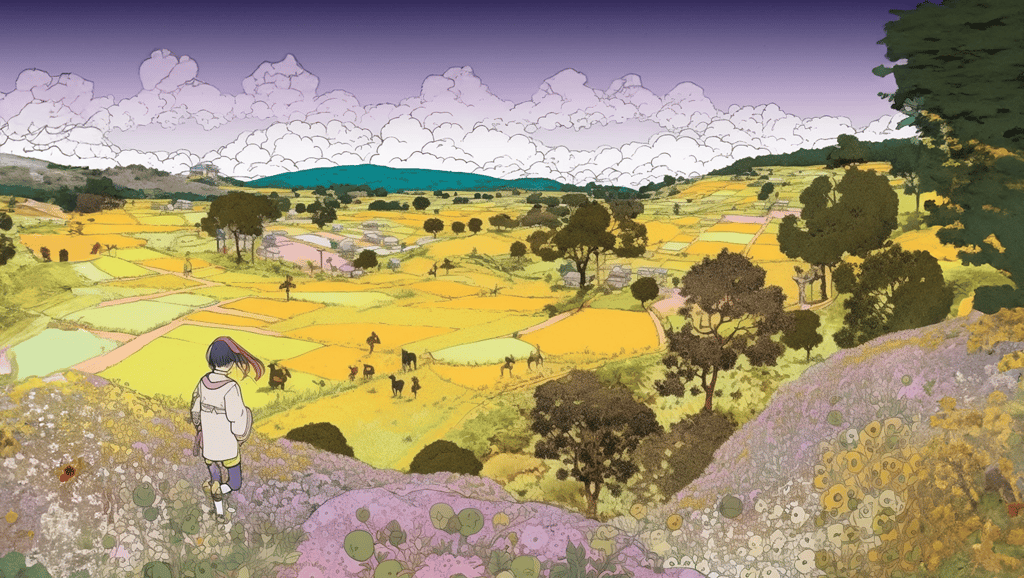 Harvestreach: Stretching farmlands where the golden hues of grains meet the horizon, embodying Emberfall's agricultural spirit.
